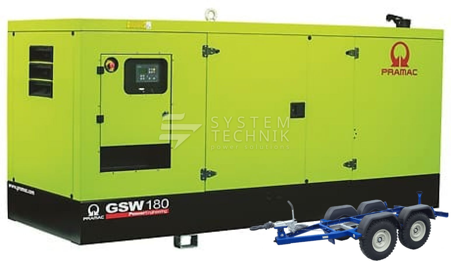 - Дизельный генератор Pramac GSW 180 P 400V В кожухе на прицепе