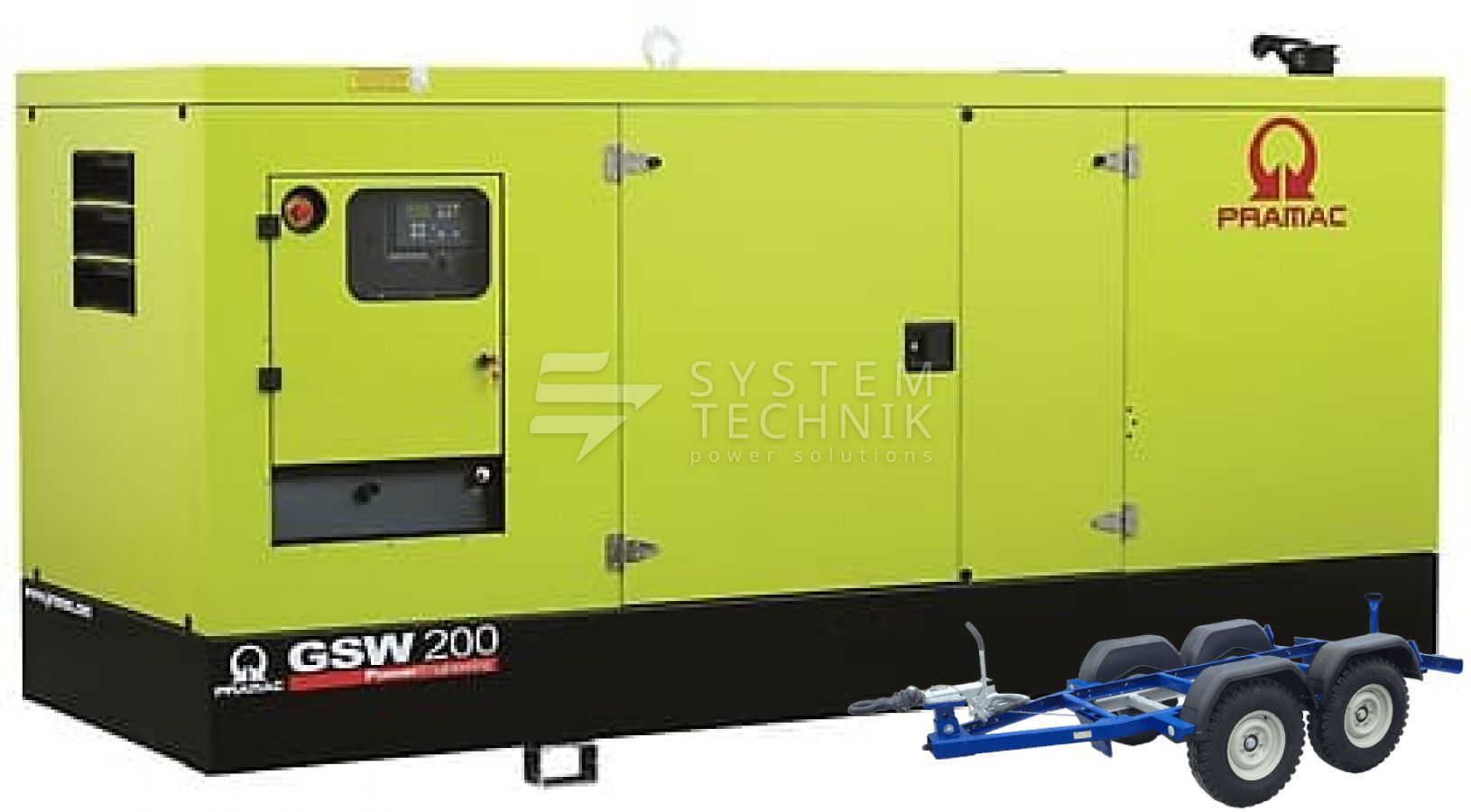 - Дизельный генератор Pramac GSW 200 P 220V В кожухе на прицепе