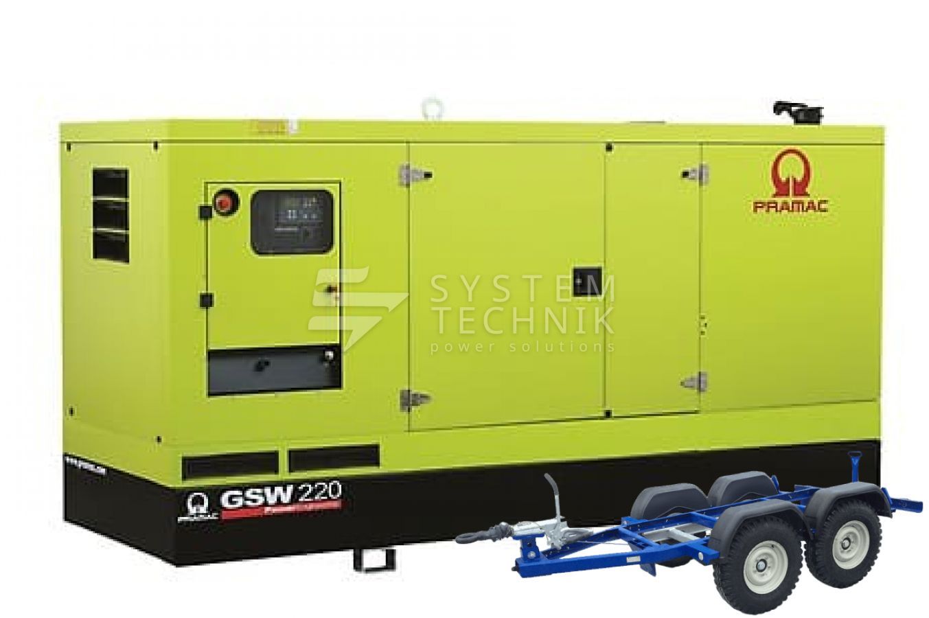 - Дизельный генератор Pramac GSW 220 P 230V 3Ф В кожухе на прицепе