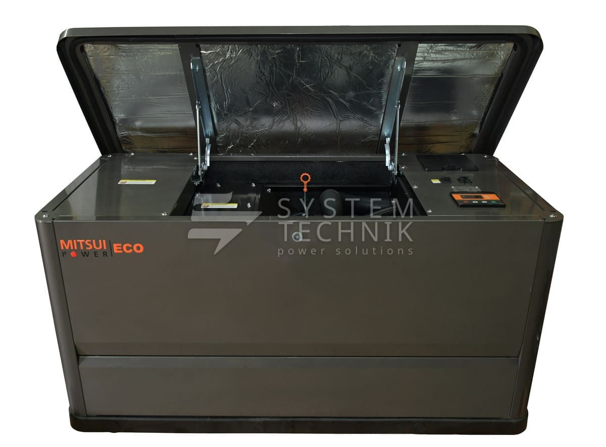 Трехфазная газовая электростанция в шумозащитном кожухе Mitsui Power Eco GM 7000 изготовлена на базе двигателя Mitsui С460 с воздушным охлаждением. Генератор предназначен для организации автономного электроснабжения домов, небольших коммерческих, социальных и бытовых объектов.